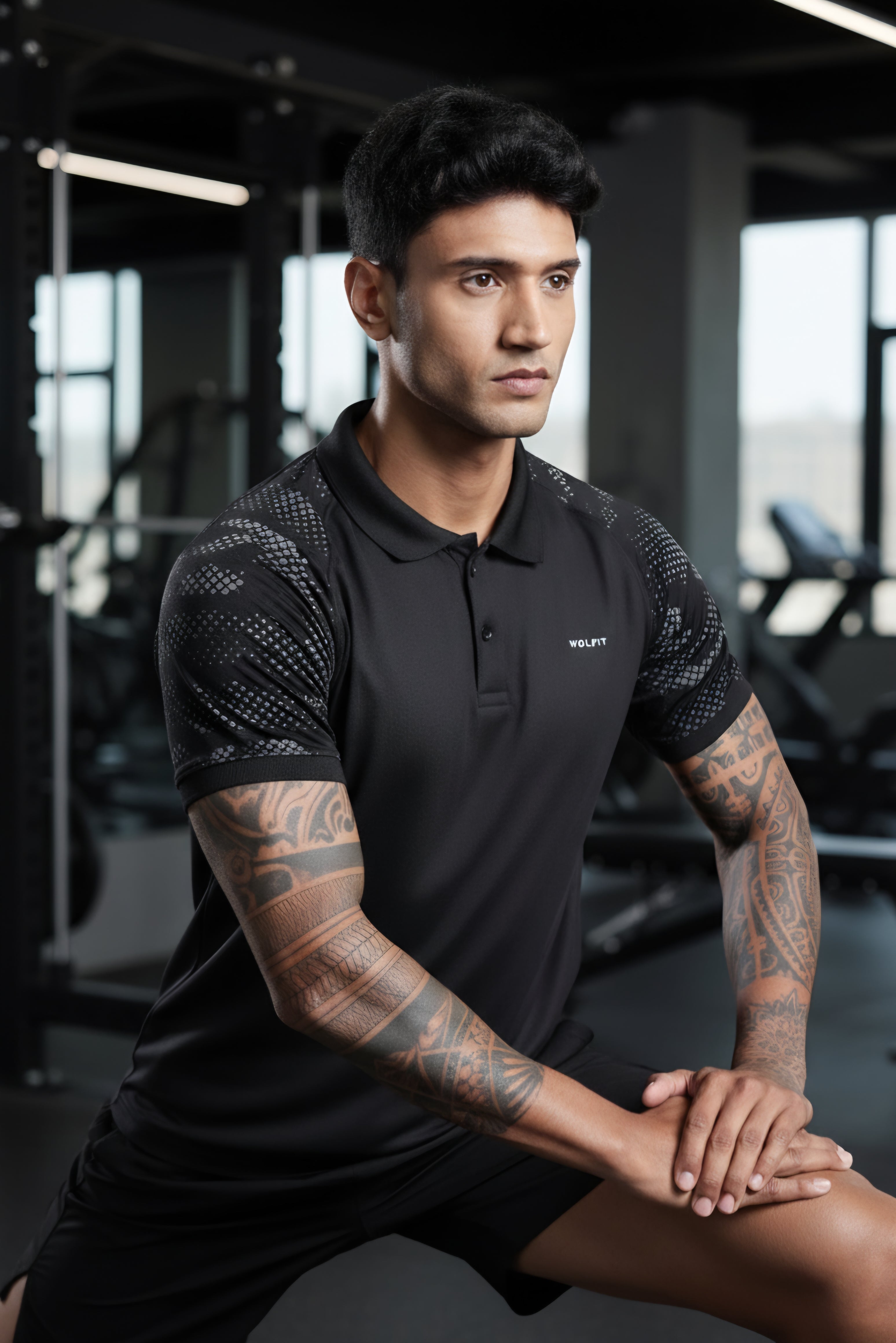 Design : Minimalist and bold, the Performance Polo features a structured ribbed collar and  3D Wolfit branding on the chest and a drop-back hem enhance its functional, street-ready vibe perfect for gym-to-street transitions.